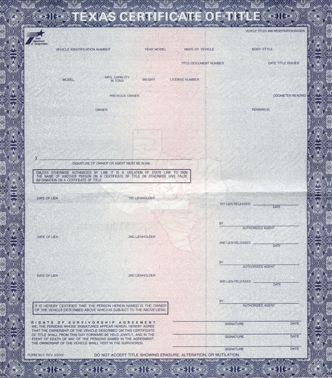 • Clear Auto Title / Blue Texas Title